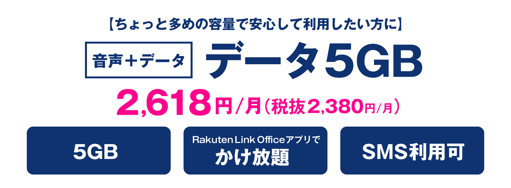 | 基本通話 Rakuten Link Officeアプリ | 通話かけ放題:無料 アプリ未使用時は30秒/20円 |